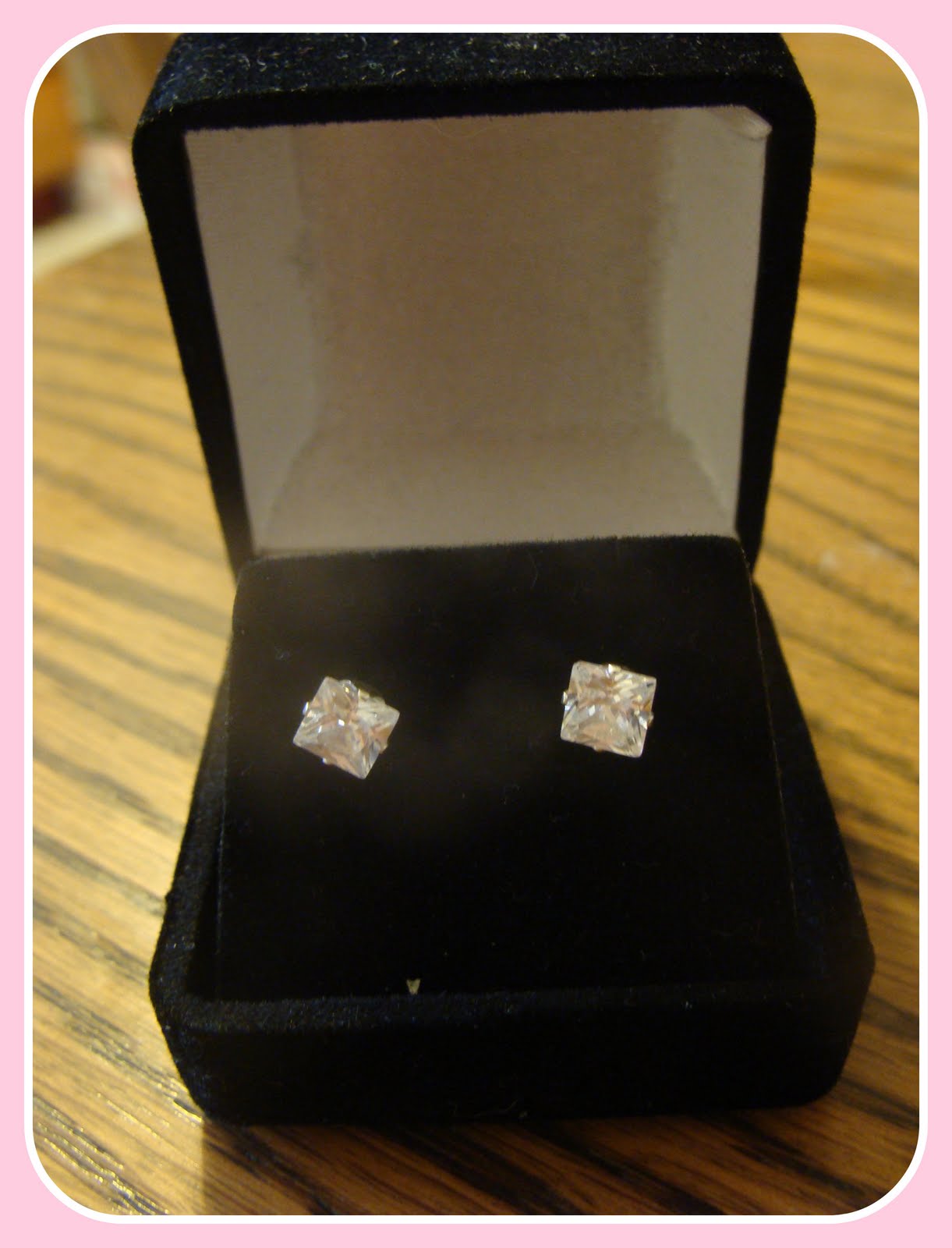 They are square diamond earrings, which are my favorite and just the perfect size.