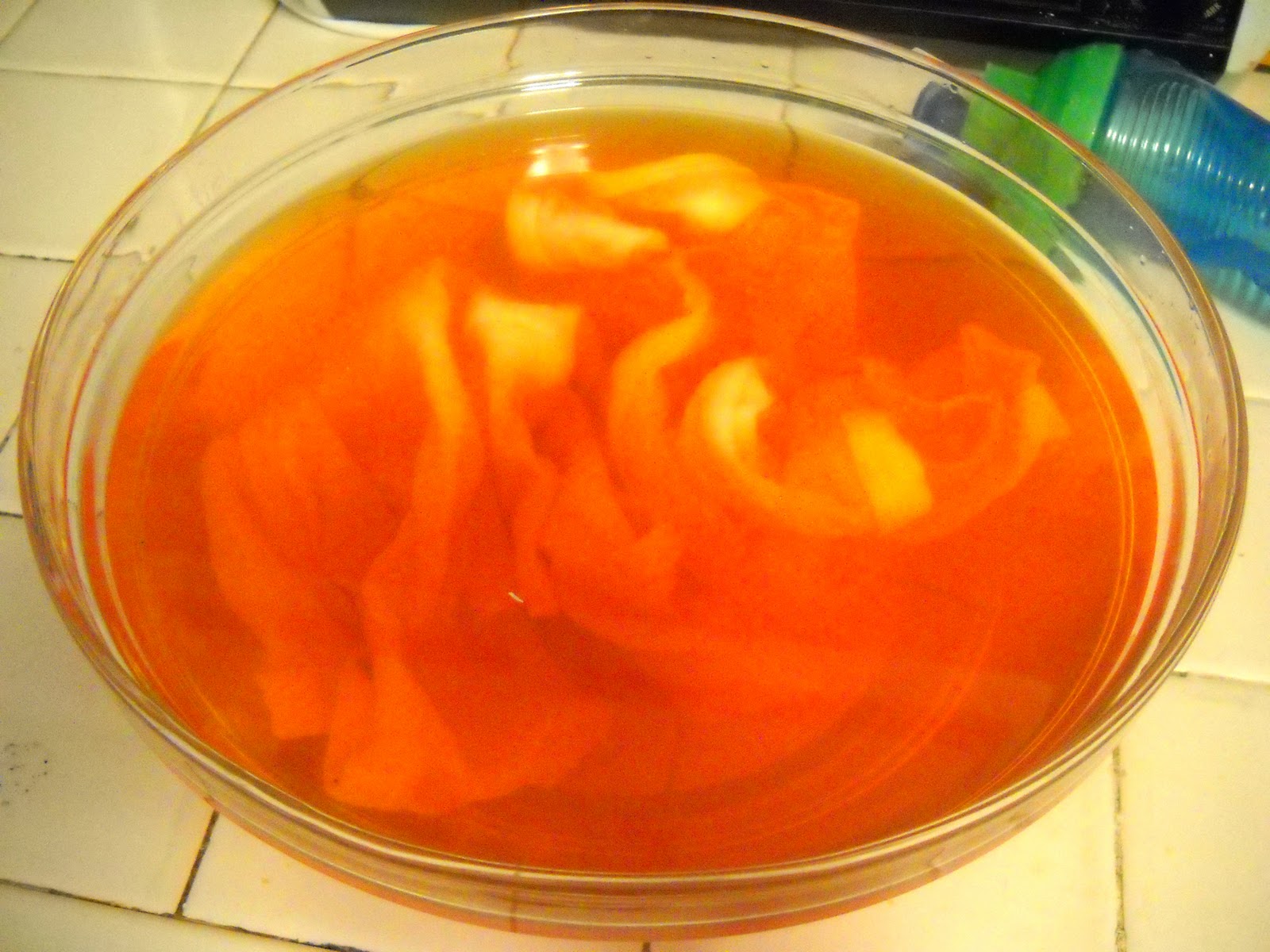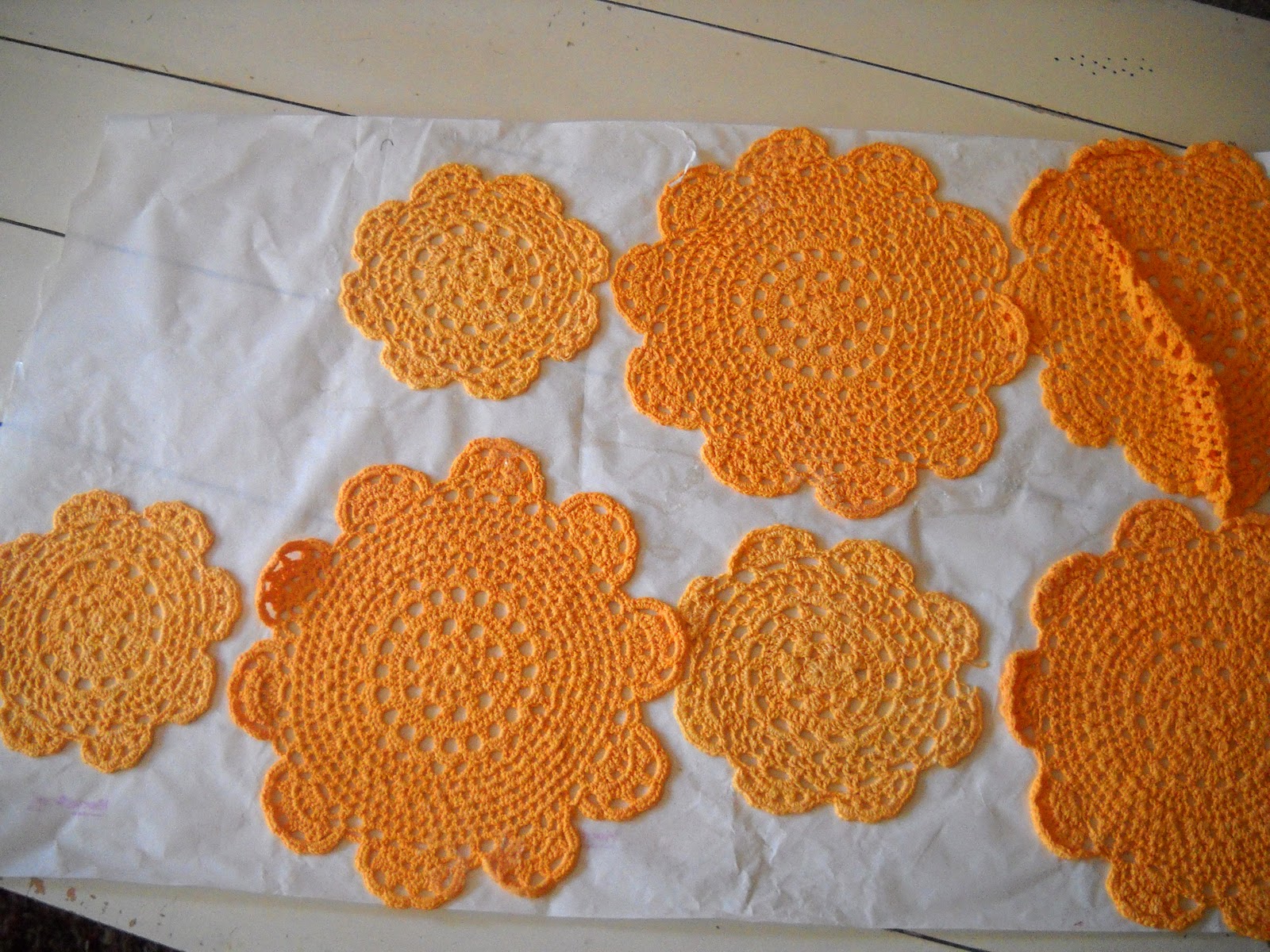 Next, take the doilies you are dying and drench them in hot water so that the dye will soak in better.