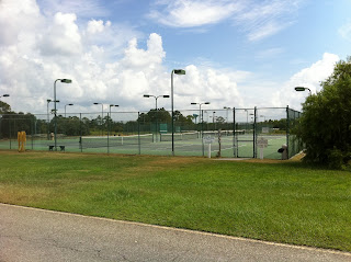 Across from the Office is a Basketball Court, Shuffleboard and Horseshoe pits. There is also a tennis court.