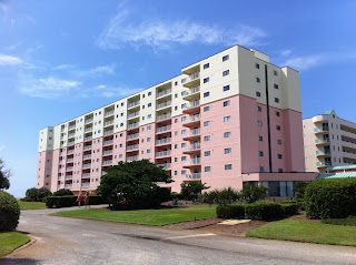 Here is a distance view of some of the buildings. The tall building is Plantation Dunes, where we stayed. The long building that you see is Plantation Palms.