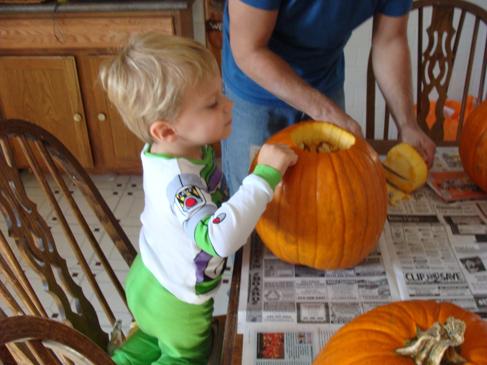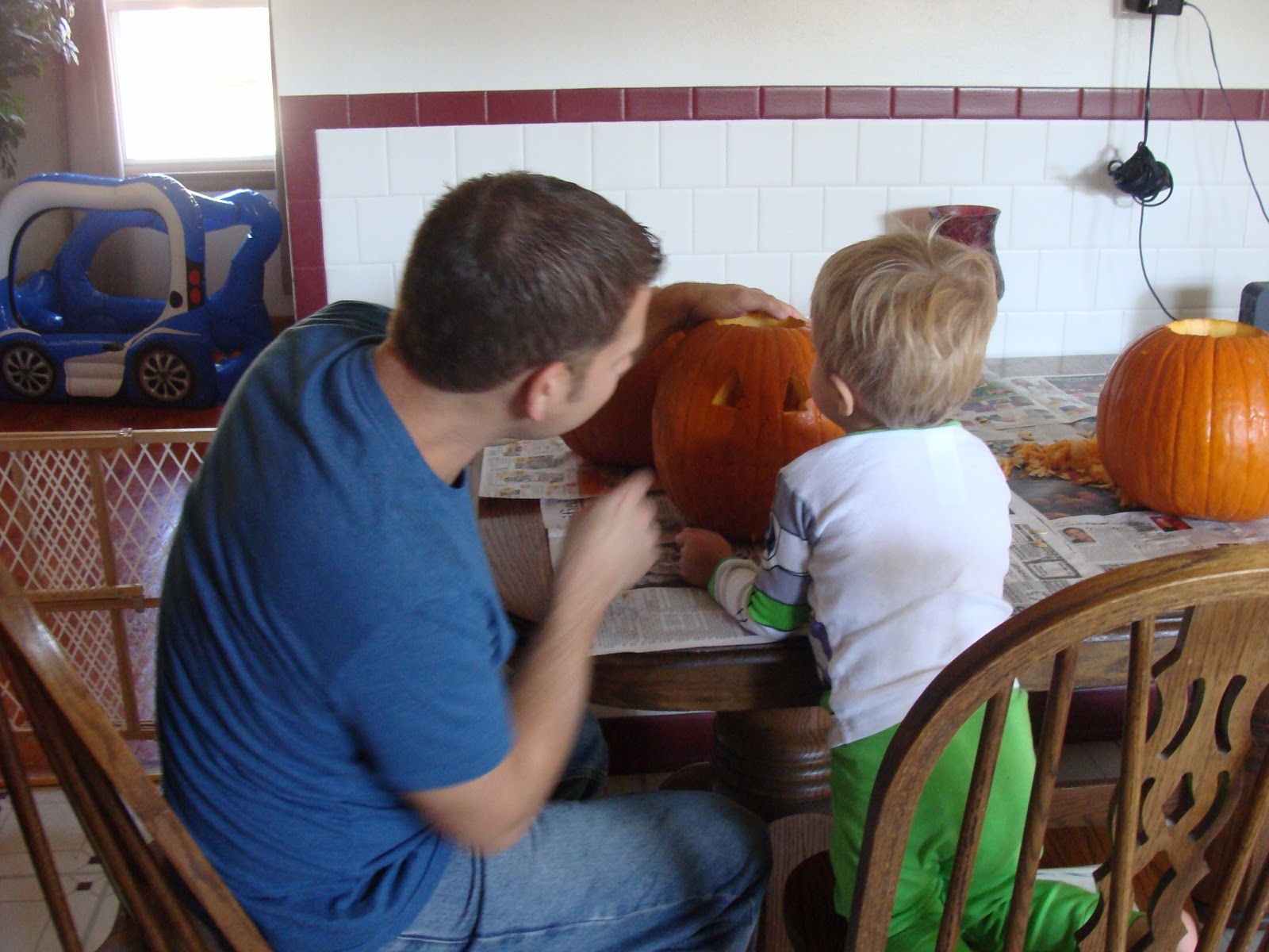 Halloween was spent doing some morning errands and then we decided to carve our pumpkins! We had a lot of fun and Hayden got a kick out of watching us. He didn’t really want to help us, even though I asked him if he wanted to help take out the “guts”!