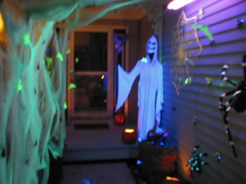 And added some black lights a lot of spiders, bats and a few skeletons. This year a newspaper found my house and I got interviewed so guess what? I got me some treaters this year. Yep, I did.