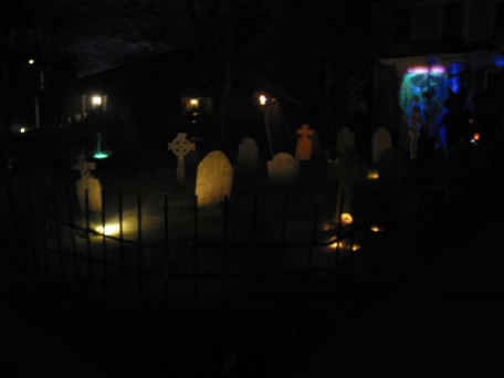 The Next year I got the Martha Stewart magazine and saw some home made tombstones in it. I figured I would add some of those and I got a fog machine too.