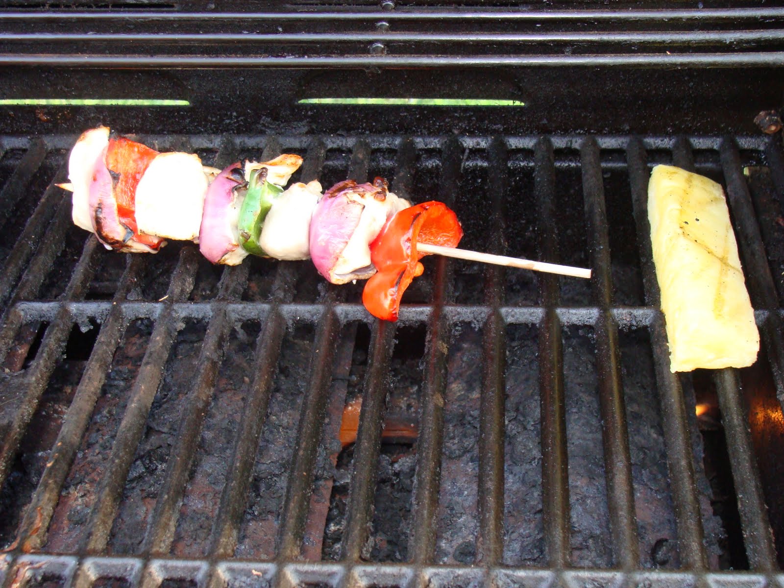 Heath grilled some delicious chicken kabobs and some pineapple.
