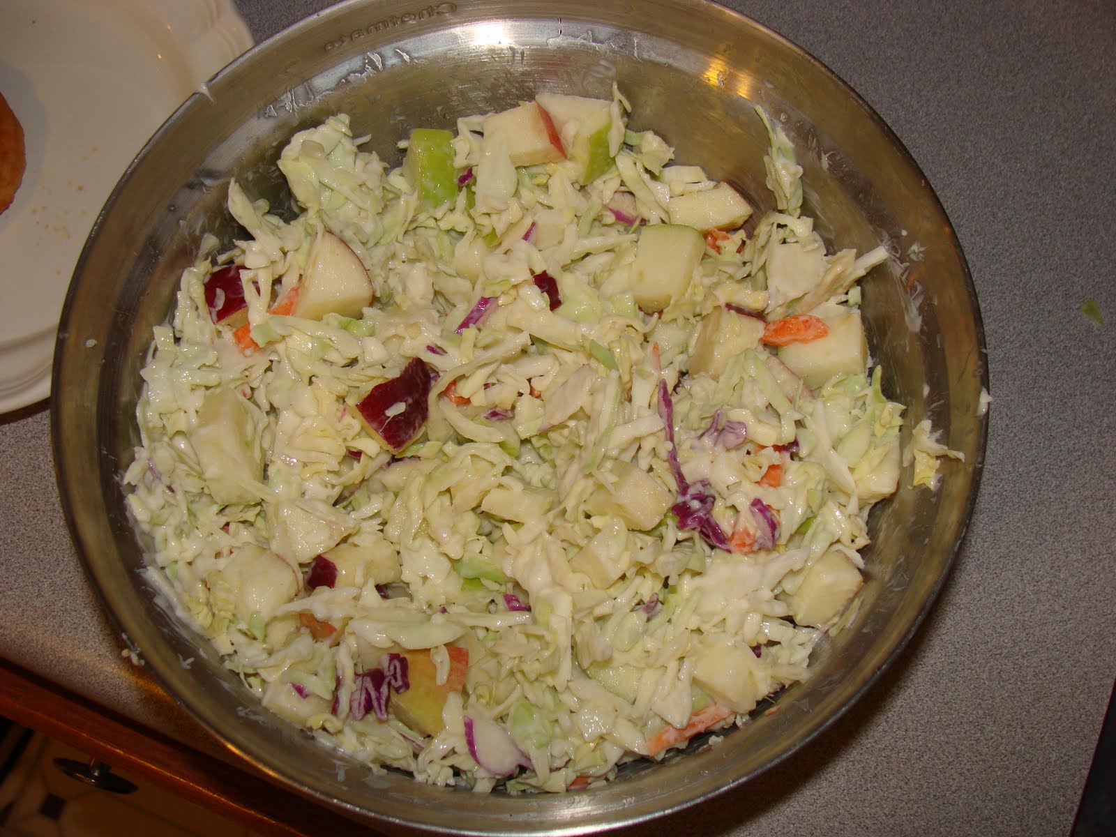 And I made Apple Coleslaw. Here’s the recipe which I found on the Kraft Website!